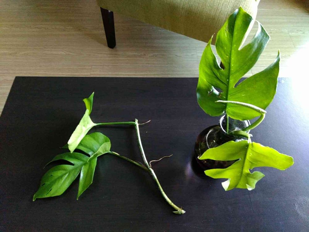 モンステラはハートのような葉で、マングースカズラは木葉のような葉をしています