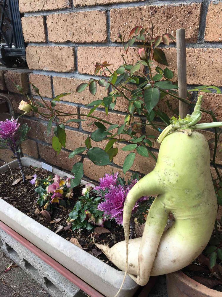 変な大根頂きました‼️食べる前に、可愛いい緑光の蕾と記念撮影💕