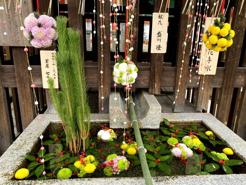 素敵゚+.゚(´▽`人)゚+.゚お花で飾る手水は、和みますね😆💕