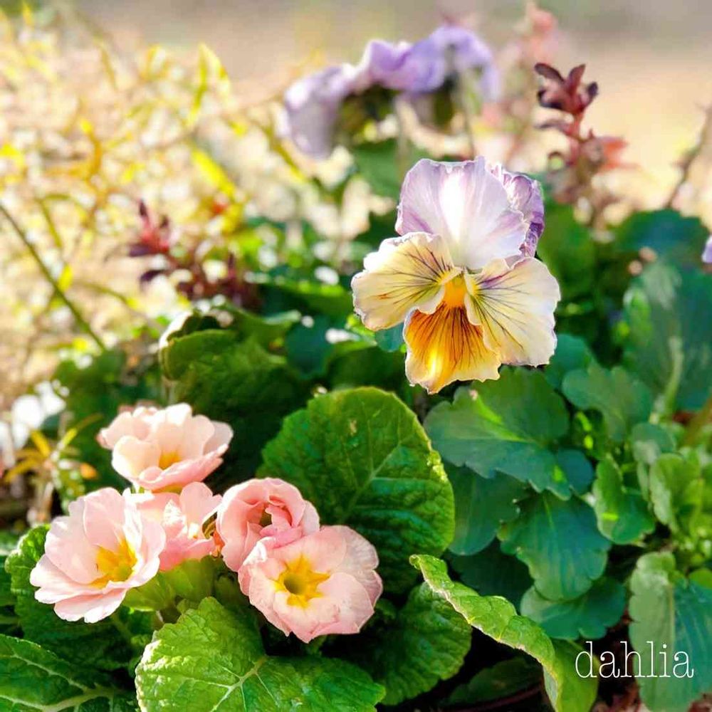 パンジーとプリムラ、どちらも落ち着いたムードのニュアンスカラーで素敵ですね😊💕