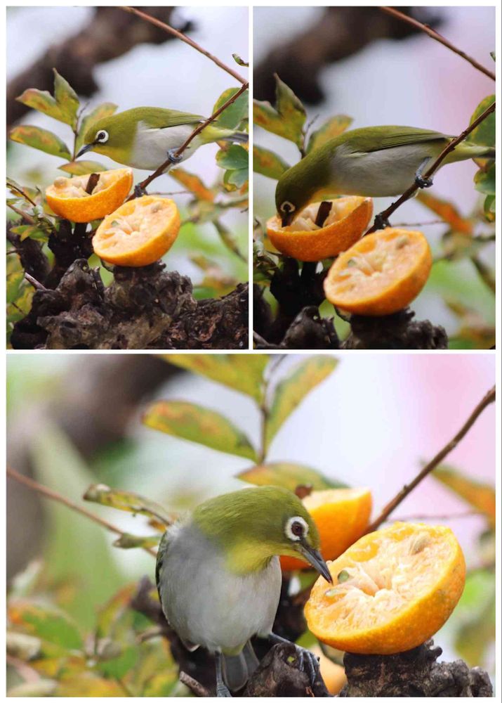 我が家にもベンチに置いたミカンにメジロさんがよく来てくれますが、携帯では遠すぎて上手く撮れないのでこんなに可愛い写真を見れて嬉しいです🎵🎶