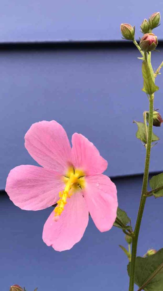 わたしの庭の🌸は大きさが6センチくらいで耐寒性があり、雪に埋もれても毎年出てきます。横に広がらず縦にヒョローンと伸びて、葉っぱの形は朝顔の形です。耐寒性があるのでハイビスカスよりは芙蓉や立葵に近いのかも😅