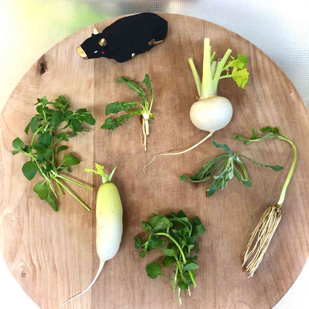 七草、カブと大根がミニサイズで可愛いから、つい並べちゃうのよね☺️