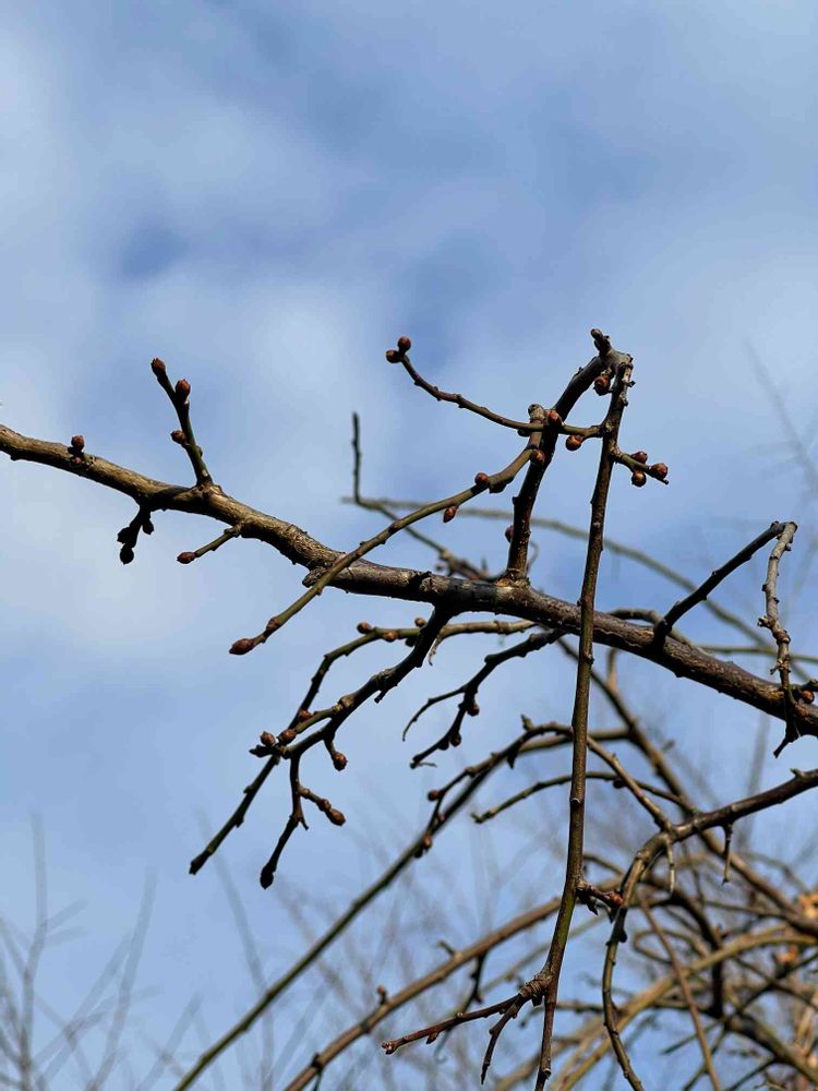 真冬の寒空の下、🌸梅🌸の蕾が膨らみ始めました。