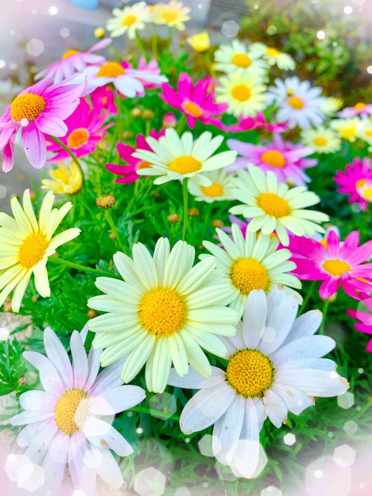 さん♥㊗️GS3年目おめでとうございます🎊 素敵なマーガレット色とりどりですね(*˘︶˘*).。*♡💖