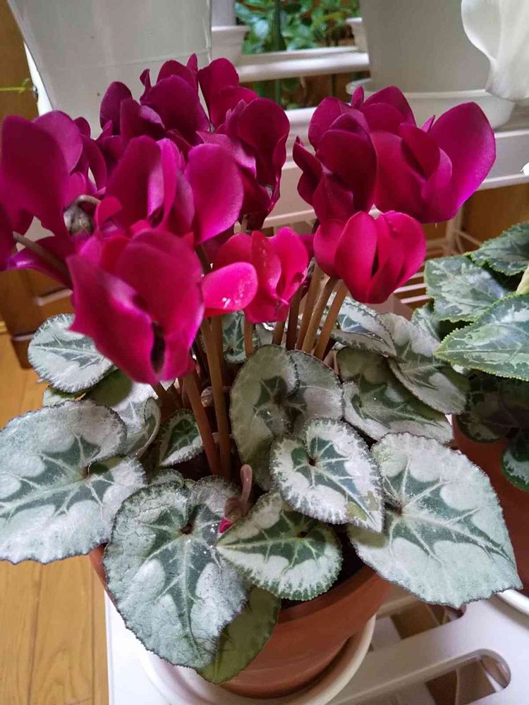 シクラメンの花より先に葉色や葉模様を見てしまいます😊