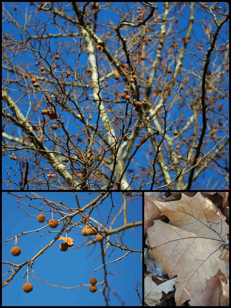 プラタナスの実の付き方が、クリスマスツリーにオーナメントを吊るす時みたいな感じで・・・落葉した木立を可愛く飾ってるなぁと🎵
