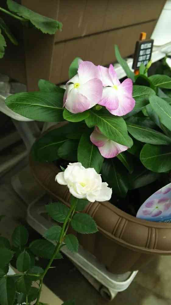 先日迎え入れたミニ薔薇とニチニチソウのツーショットです😍