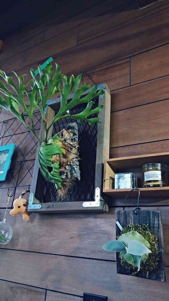 さん、ありがとうございます、誉めていただいて嬉しいです、☺ビカクシダ君達の板や木枠は全部自作ですよ、作る工程も楽しいですが完成してビカクシダを着生させると満足感が格別ですね🎵