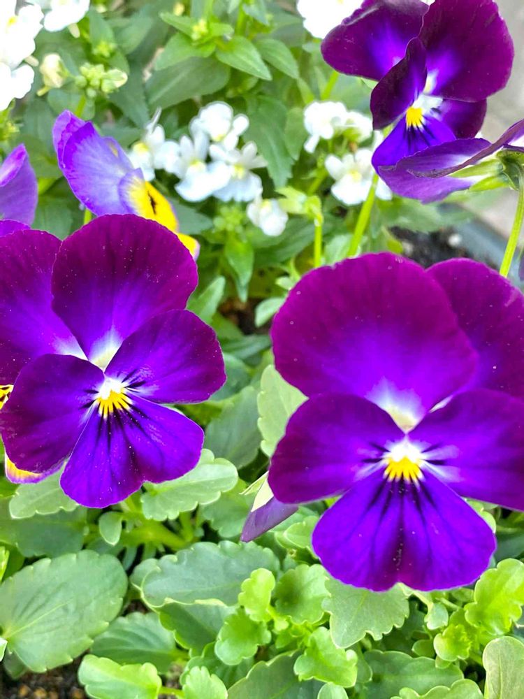 虹色スミレの寄せ植えです💜