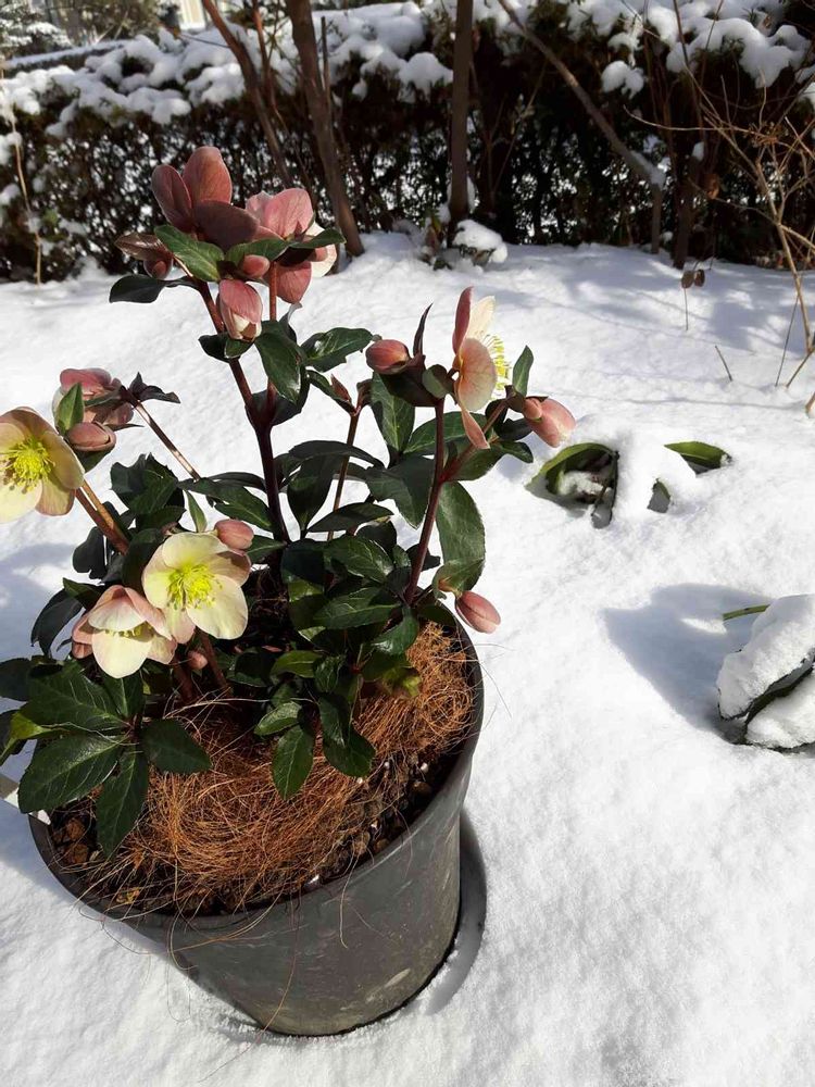 雪の中で頑張って咲いてくれるクリスマスローズ。マエストロのピンク優しい色が素敵ですね💕沢山咲いてるなぁ🥰