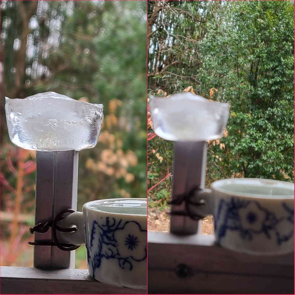 昼間は11℃、今は−1.5℃雪がチラついています。地面が凍っているので、明日は積もりそうです。☃️