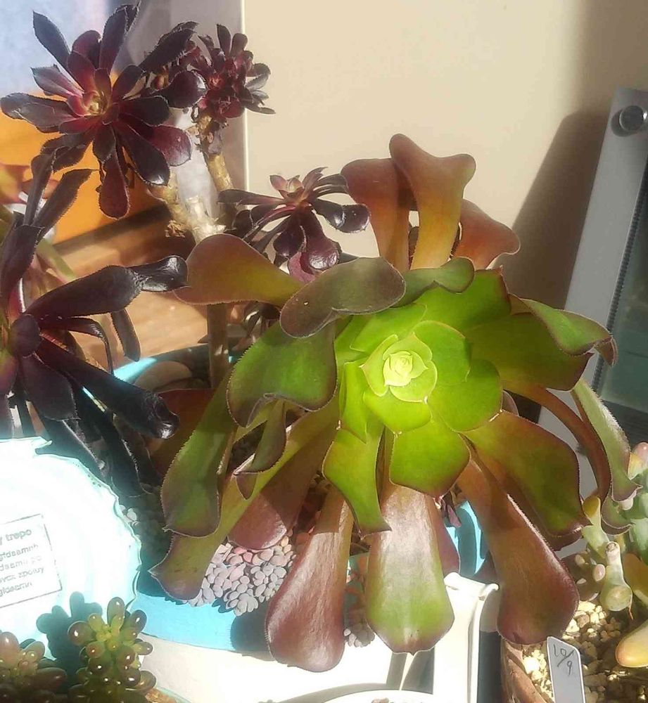 窓辺,冬の多肉植物,アエオニウム寄せ植えの投稿画像