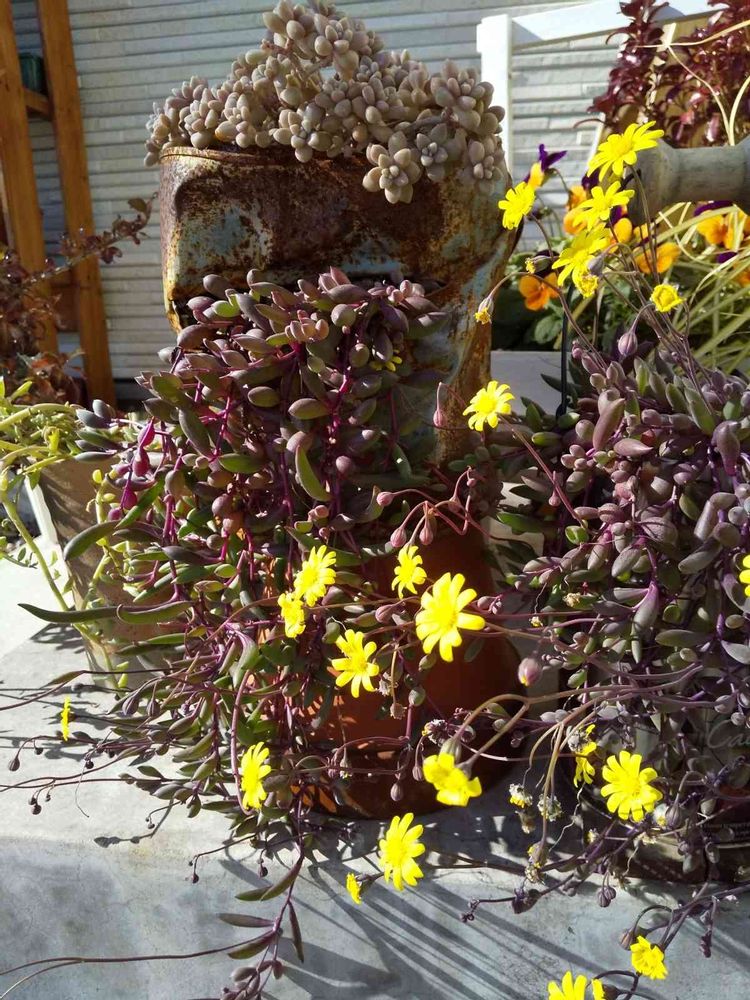 サビペンキ缶に素敵に植えてあるね〜❣️ルビネさんの垂れ具合がいいね😊