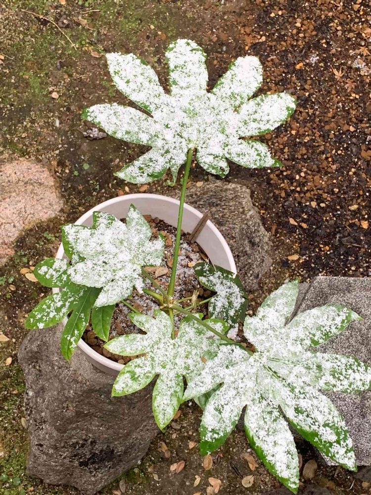 ヤツデの雪化粧、とってもキレイです💖