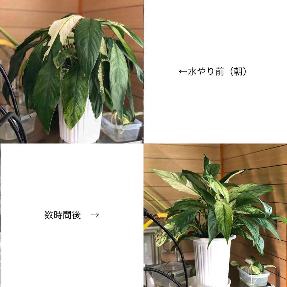 スパティフィラムははじめて育てるのですが水やりのタイミングを葉っぱで教えてくれるのでわかりやすい✨
