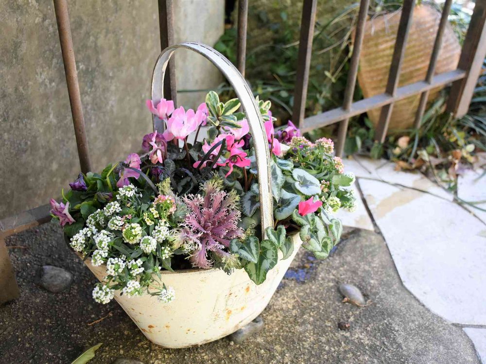 ガーデンシクラメン 、アリッサム、ハボタン、ビオラ、コクリュウ、ヘーベ