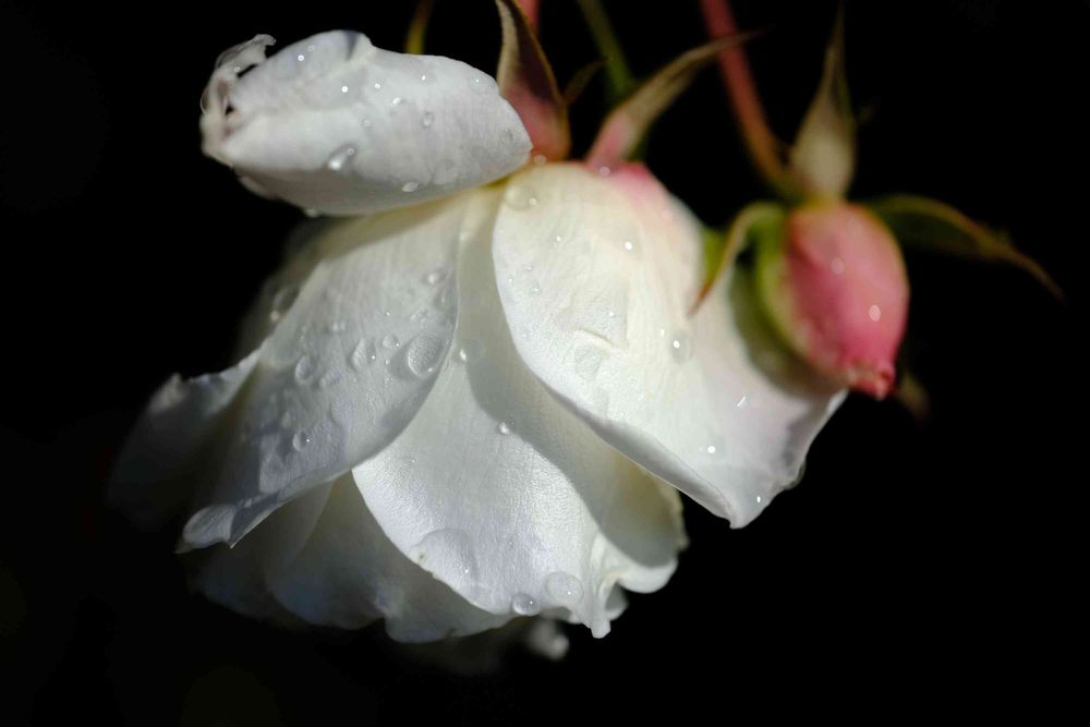 昨夜拝見し薔薇を逆さにし水滴🤔