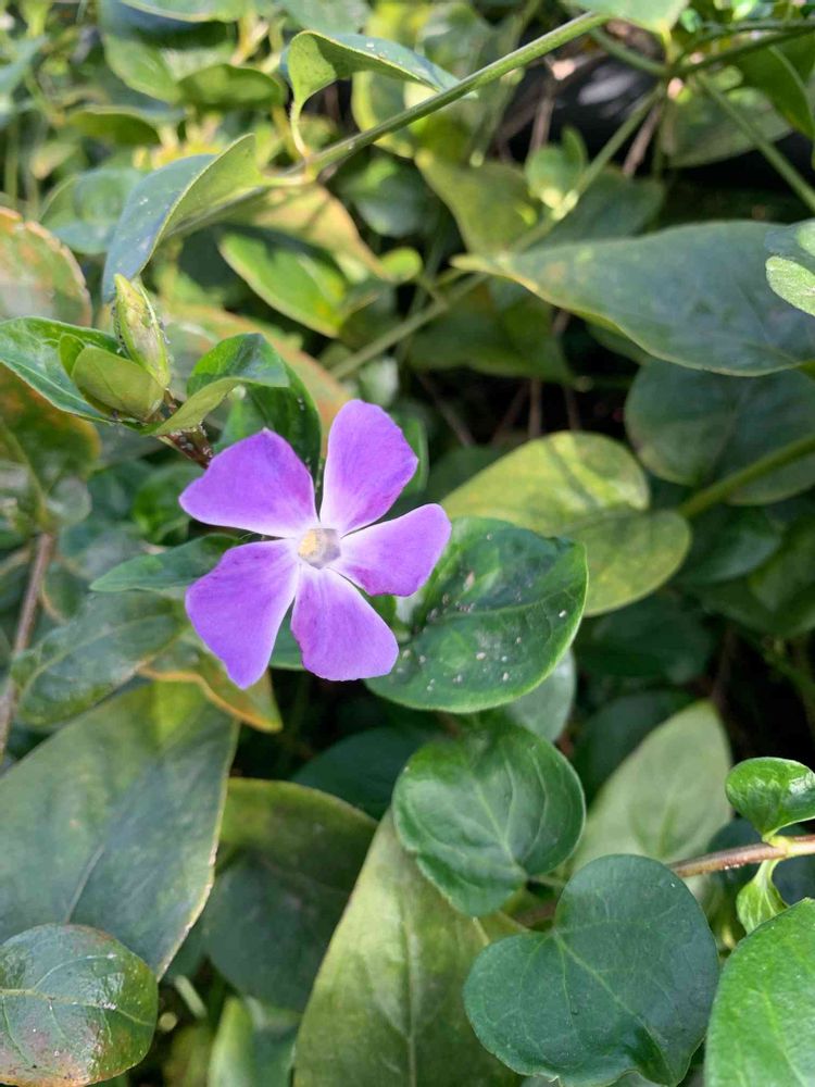 仲間のビンカ・マジョール(ツルニチニチソウ)の小型版らしいです🧐春に沢山咲きますが、あわてんぼうさんがいました‼︎🤗🌸