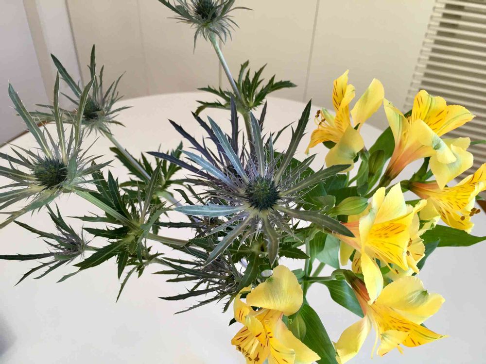 お正月に飾ったエリンジュームに、アルストロメリアを合わせて。