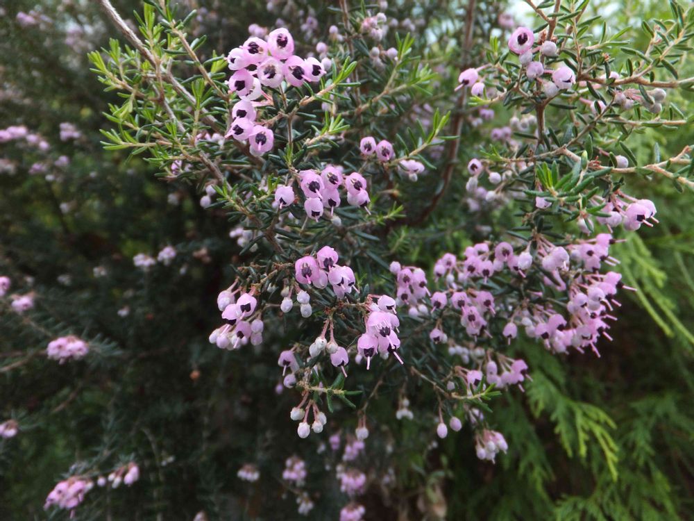 朝の通勤途中。 小さなお花「ジャノメエリカ」ヒッソリ咲いていました。 パチリ