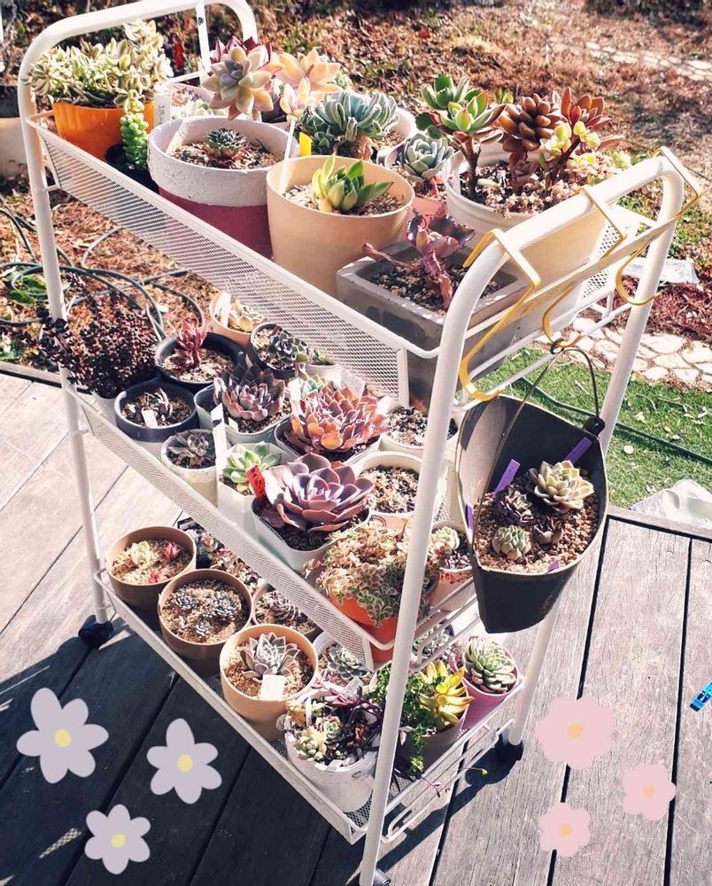 可愛~ワゴン☺。多肉ちゃんや多肉鉢さん、ワゴンに乗れて嬉しいだろうなあ。本当は家も入れてあげたいのだけどなぁ😒。置き場や面倒臭くて😁。