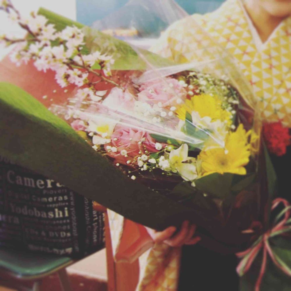 偶然にも先生のお着物にベストマッチな花束♡♡