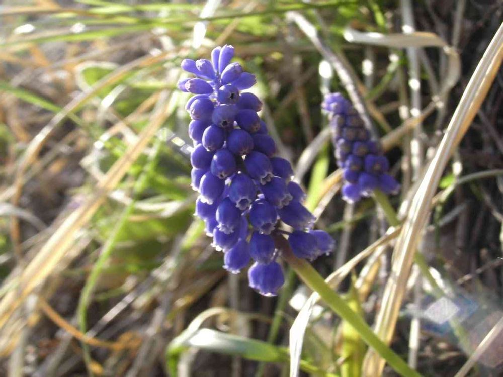 朝日を浴びて、精一杯背伸びをする、、紫の花。