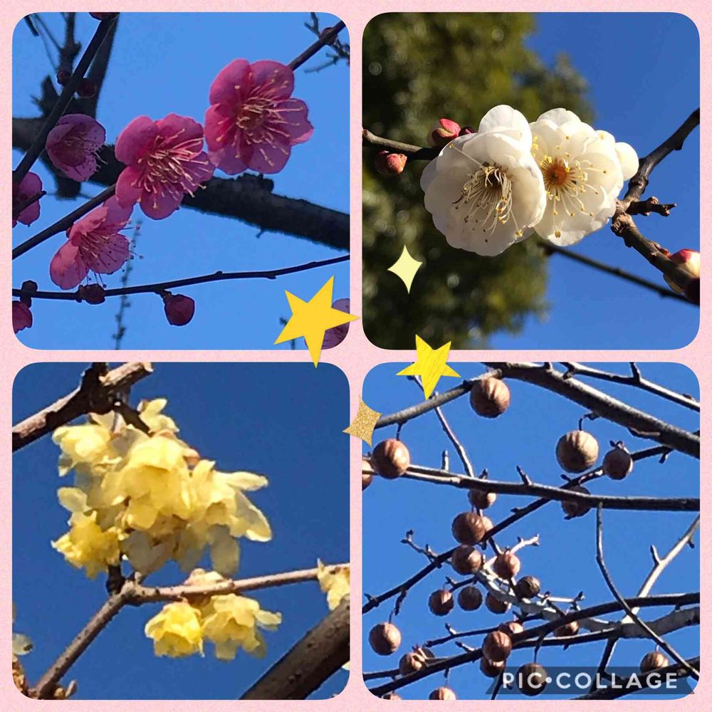 梅の花と蝋梅が咲いていました🌸🌼