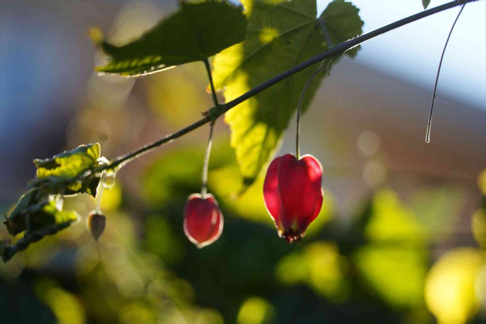 散歩道でいつも出会う民家フェンスのチロリアンランプの花は、まだいっぱい咲いていました。寒さに強いのですね。ウキツリボクともいうらしい。