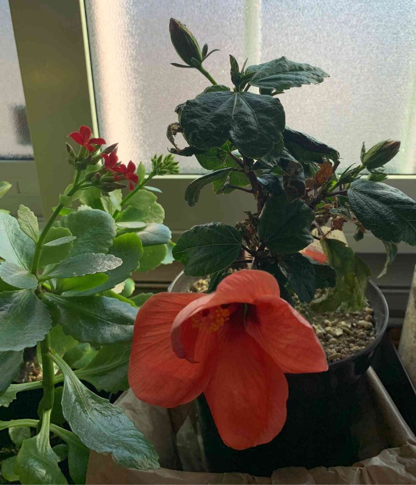 今日は外は雪だというのに、季節外れのハイビスカス頑張ってくれています🌺