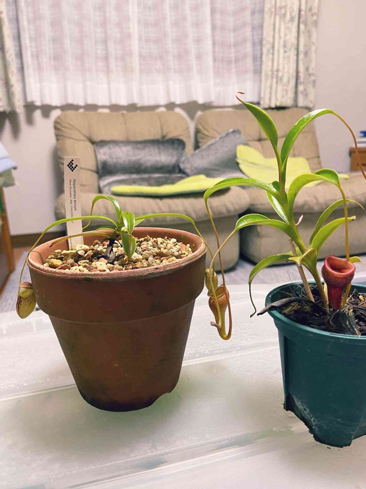 どちらも高山性ネペンテスですがスマトラ系ハイランドネペンテスは比較的丈夫な品種です。夏は無冷房だったのでジャンバンは機嫌悪かったです😅