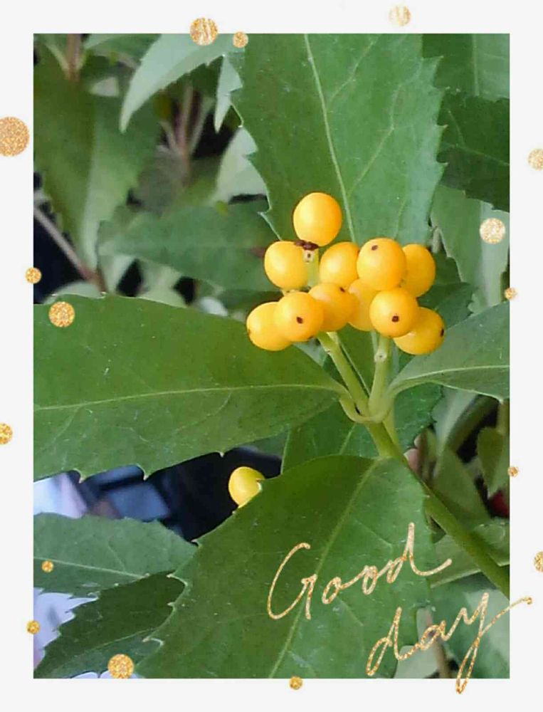 初めて見た黄実千両、優しい色合いに癒されますね💛゚・*:.。❁