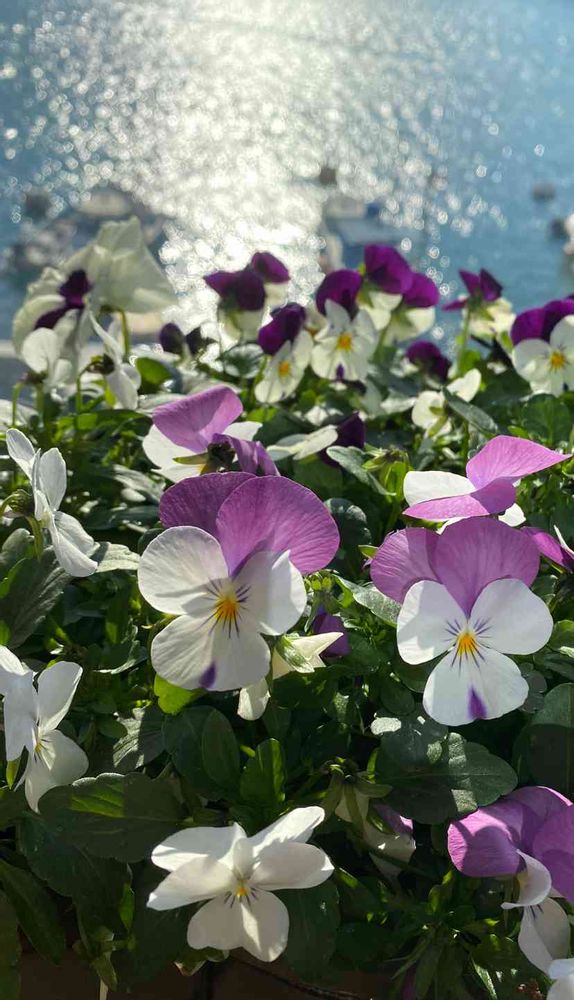 太陽の光と、海のキラキラ✨でビオラ さんが、より素敵に輝いていますね〜💖