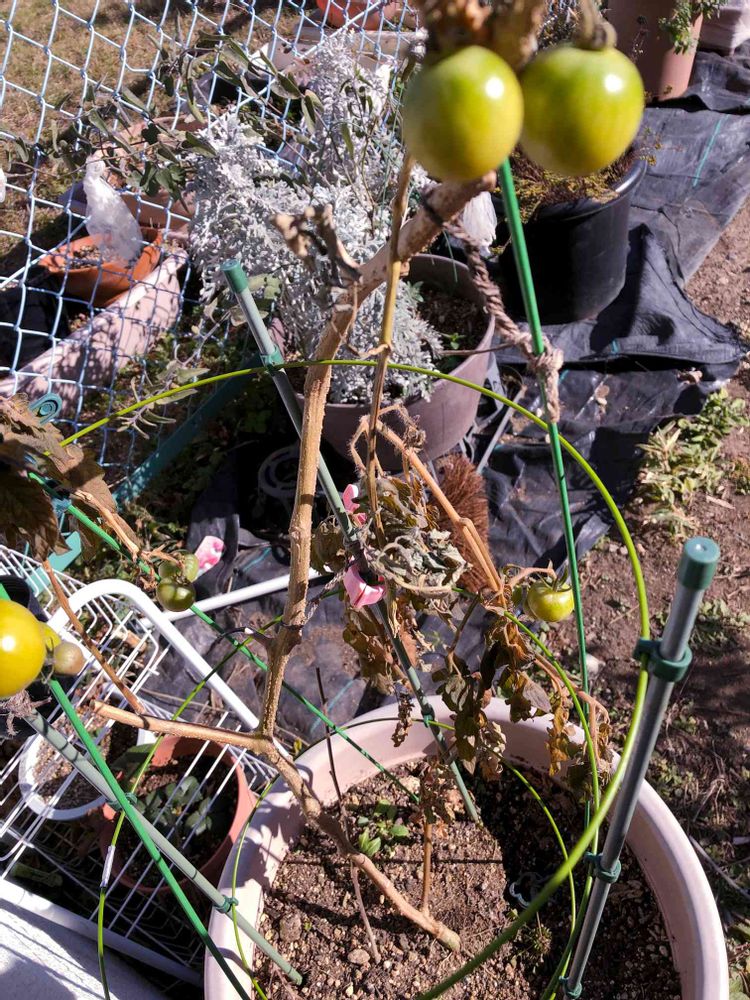 2021-1-10 (日)快晴☀️ 6° ミニトマト🍅 コレは凍りましたねー色づき始めていたのに🥲2年めトマトに成れず😞撤収します