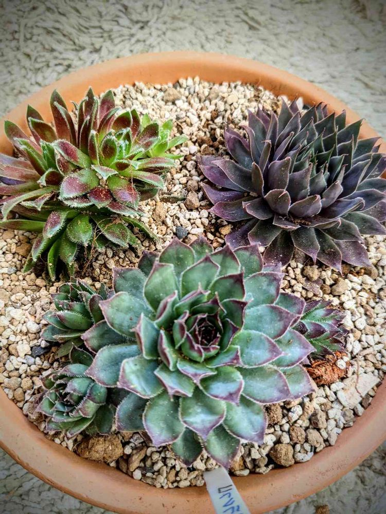 さん、お名前もだけど、三つのセンベルにとても湖西があって💕いいなぁと思います。我が家の周りの花屋にもホームセンターにも、こんなお洒落なセンペルビウムはないですよ。右上のp.ジョーダンって、人の名前みたいだけど、シック名前紫が多肉っぽくなくてカッコいい💖エルグレコちゃんのピンクの縁取りもね❗️ あ、二つとも人の名前ですね。