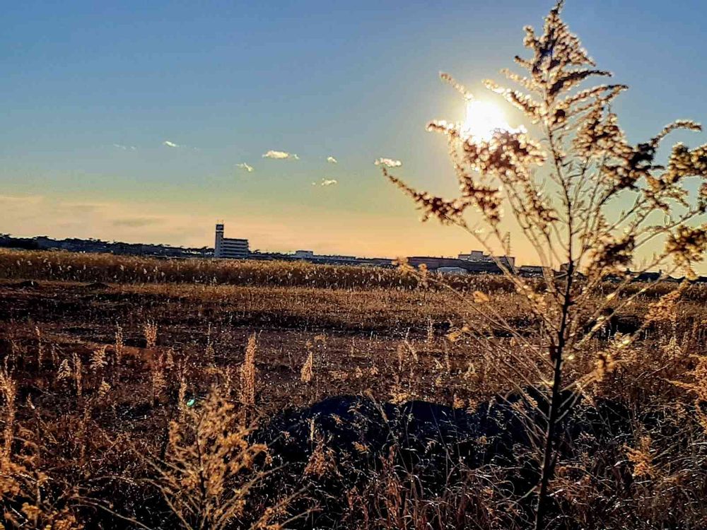🚙で移動中 西陽と枯れたセイタカアワダチソウを見て 今だ!と