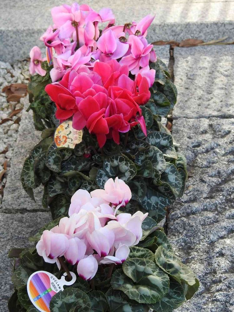 民家のアプローチに飾られた❗綺麗な🏵🌼🌸シクラメンの花🌸🌼🏵