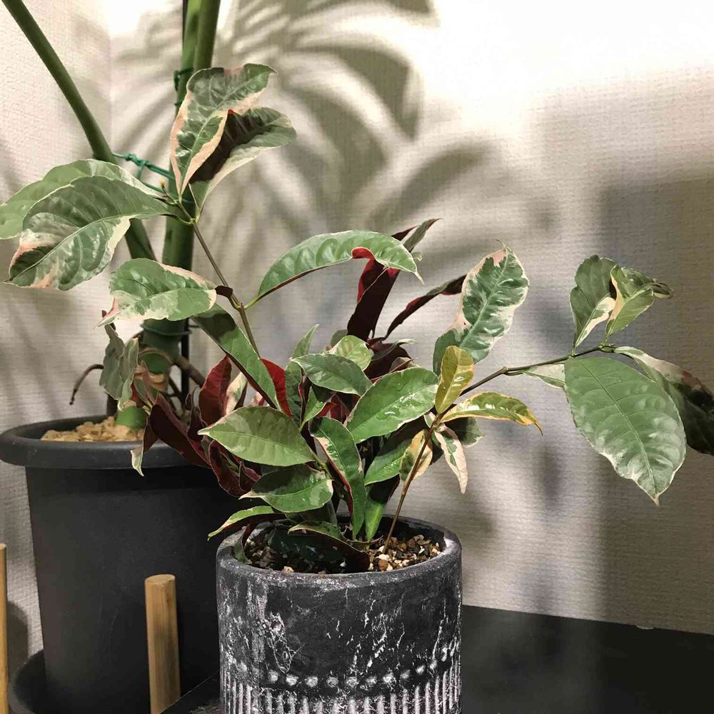裏側のディープレッドと葉脈に沿ったポコポコの葉が可愛くてお迎え.