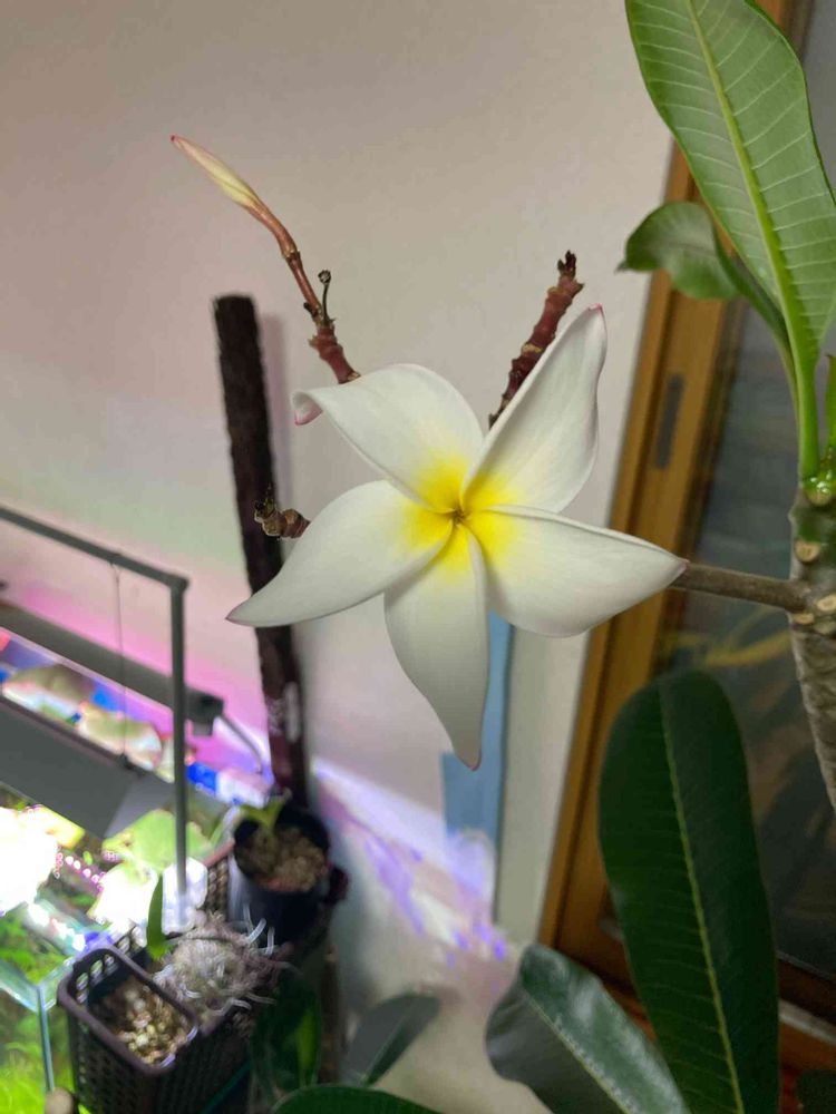 実際は直径7cmと小さいですが真冬に自宅でプルメリア見れて幸せ気分です(*´ω`*)