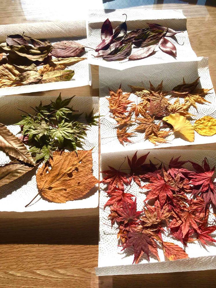 私も葉っぱ集めています。デッサンに使ったり、絵の具つけて推し絵にしたり