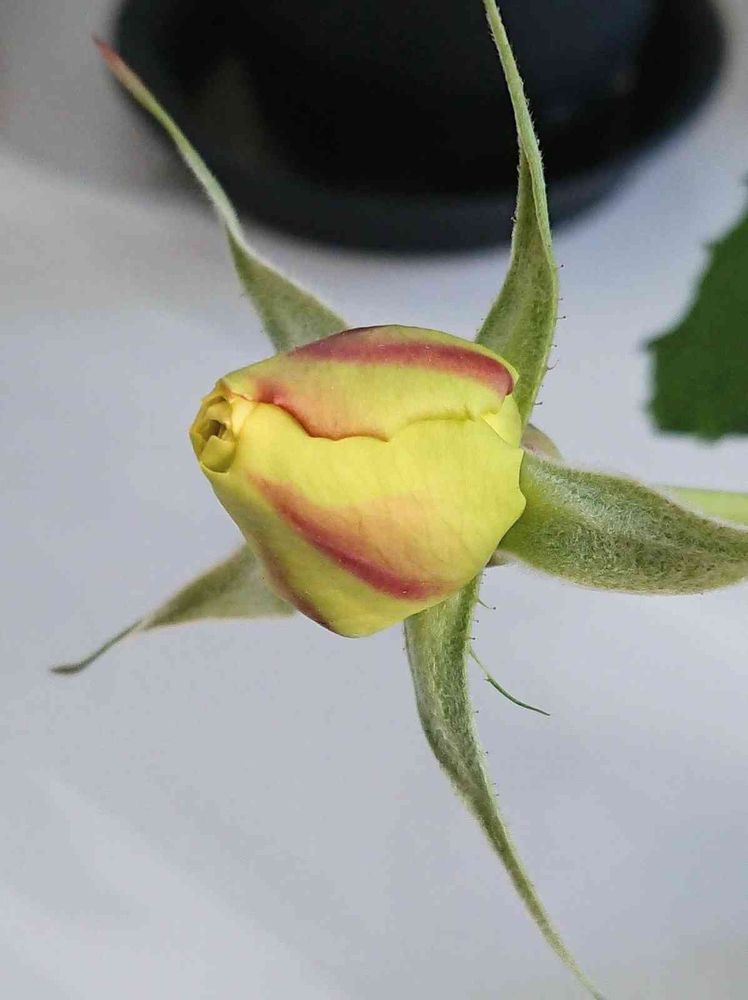 黄薔薇だけれど、蕾のこの赤いラインがお洒落です。