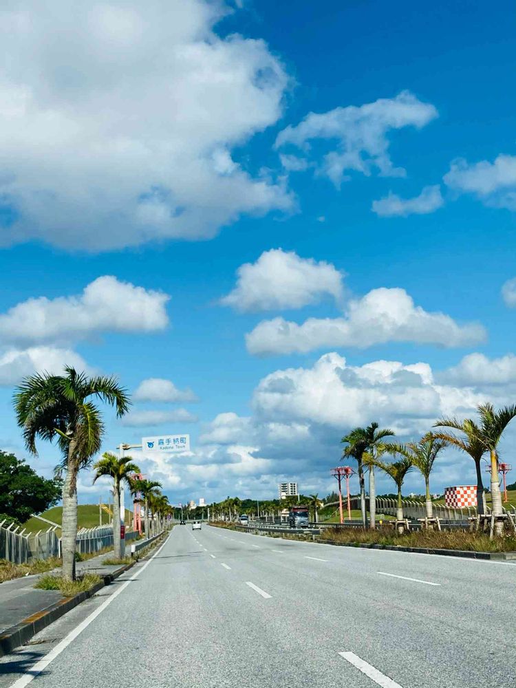 国道58号線〜トックリヤシモドキ🌴が青空バックに映えてます✨
