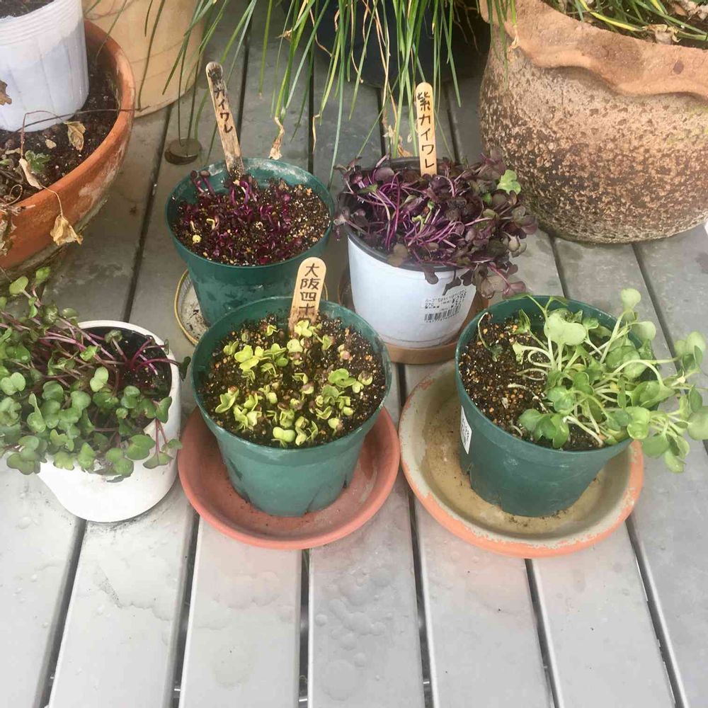 バルコニー/ベランダ,カイワレ大根栽培,ルビーカイワレ大根栽培の投稿画像
