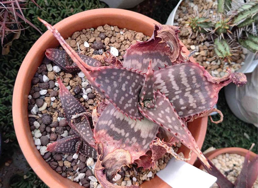 ⚫サボテン、アロエ、塊根など。 ⚫たまに「いいね」押してます。 --------------------------------------------------------- 【19.08】19年8月頃から徐々に多肉植物・サボテンの魅力に取り憑かれてしまいました。 【19.10.22】グリーンスナップを始めました。 【21年~22年】冬越しをほぼ室内避難しないチャレンジ。 【我が家の多肉植物・サボテン・観葉植物】220506時点 662/878 【セダム】3/6 ×春萌(19/11/3) ×プロリフェラ(20/2/1) ×薄化粧(20/2/5) ・※虹の玉(20/2/6) ・※虹の玉?乙女心?(20/2/6) 6・※黄麗(月の王子)(20/3/5) 【チレコドン】2/5 ×ブッコルジアヌス(19/11/3) ×スカエフェリアヌス 群卵(20/3/4) ×万物想(レティキュラーツス)(20/9/4) ・万物想(レティキュラーツス)②(20/10/2) 5・ワリチー(20/10/8) 【クラッスラ】10/17 ・天狗の舞(19/11/3) ・紅稚児(19/11/3) ×姫花月(19/11/3) ・テトラゴナ(19/11/12) ・火祭り光(19/12/4) ×花月錦白斑(19/12/4) ×※花月(金のなる木)(19/12/12) ・神刀錦(20/1/8) ×キムナッキー(20/1/10) ×10・※メセンブリアンセモイデス(ラージフォーム)(20/1/23) ×※花月?黄金花月?⇒火祭り錦?(20/1/23) ・巴(20/2/27) ・※火祭り(20/3/5) ・ゴーラム(20/12/16) ・神刀(20/12/24) ×アイボリーパゴタ(20/12/24) 17・spトランスバール ドラケンスバーグ(20/12/24) 【カランコエ】1/19 ・錦蝶(19/10/19) ×不死鳥錦(19/10/24) ×カーニバル(19/12/4) ×※月兎耳?(19/12/26) ×唐印(19/12/28) ×テディベア(20/1/10) ×ファング(20/1/11) ×ミロッティー(20/1/23) ×※黒兎耳?月兎耳?(20/2/6) ×10・※胡蝶の舞(20/2/6) ×星兎耳(20/2/12) ×ゴールデンバニー(20/2/12) ×福兎耳(20/2/12) ×姫黒兎耳(20/2/19) ×※シナモン?孫悟空?(20/2/19) ×キューエンス(20/2/19) ×※月兎耳(20/2/20) ×黒兎(20/2/20) 19×シナモン(20/2/21) 【センペルビウム】13/17 ×巻絹(19/9/6) ・パシフィックナイト(19/9/14) ・※百恵(19/12/12) ×※高嶺の華(19/12/12) ・※綾桜(19/12/12) ・※ファイヤーバード?パルグラム?(19/12/12) ・※レッドチーフ?ウラヌス?(19/12/12) ・※シャンハイローズ?(20/2/4) ・※神風?(20/2/4) ×10・※綾桜?(20/2/4) ・※麗人盃?(20/2/4) ・※雪牡丹?(20/2/4) ×※紅牡丹?(20/2/4) ・※ラウンドシーン?(20/2/4) ・※巻絹?(20/2/6) ・レッドベル(20/2/19) 17・※ご近所さん(20/5/17) 【ガステリア】39/43 ・春鶯囀バテシアーナ(19/11/20) ・グロメラータ(19/11/20) ・臥牛(19/11/20) ・リリプターナ(子亀姫)(19/11/20) ・白星竜(ベルコサ)(19/11/20) ・錦沙戸宝(19/11/20) ・ニティダ(19/11/22) ・フロッキー(19/11/22) ・姫子宝錦(19/11/24) 10・虎鉾(19/11/24) ・富士子宝錦(19/11/26) ・照姫(19/11/27) ・恐竜×大桑臥牛(19/11/29) ・颯々の松(19/11/29) ・ドラゴンスキン(19/12/2) ・名前不明⇒グリーンワイパー(19/12/4) ・黒鶯囀(19/12/4) ×臥牛錦 糊斑(19/12/4) ・白臥峰ダルマタイプ(19/12/4) 20・バイリシアナ×グロメラータ(19/12/10) ・ピランシー錦※斑多め(19/12/24) ・ピランシー錦※斑少なめ(19/12/24) ・臥牛竜(19/12/24) ・グラキリス(虎の巻)(19/12/25) ・ホワイトパール(20/1/7) ・白銀水牛(20/1/7) ・エクセルサ(20/1/8) ・ダルメシアン(20/1/10) ・タワー(20/1/23) 30・クロチェリー(20/1/23) ×ニグリカンス f.dark monstrosa(20/2/27) ・金剛殿(20/2/27) ×ラウリンソニー(20/3/13) ・幅広ピランシー(20/4/7) ・恐竜×白点臥牛(20/4/7) ・恐竜(20/11/9) ・ラウリンソニー②(20/11/19) ・恐竜②(21/1/12) ・恐竜×春鶯轉(21/1/13) 40・ホワイトパール②(21/1/13) ×ラウリンソニー③(21/2/10) ・エレフィアエ(21/4/13) 43・臥牛②(21/6/14) 【ディッキア】49/52 ・ハイブリッド(19/11/6) ・(アリソナ×マルニエルラポストレイ)×ボーン(20/2/21) ・アリゾナ(20/3/13) ・ニッケルシルバー(20/3/13) ・縞剣山錦(20/3/18) ・(ケリー×マセドイ)×ヘブディング ビッグブルーF1(20/3/24) ・ターザン(20/7/15) ・ゴエリンギー(20/7/15) ・エステベシー(20/7/16) ・グランマルニエル スノウ(20/8/21) ・ダウソニー(20/9/9) ・コリスタミネア パープルフォーム(20/9/16) ・マイケルアンドレス(ブリットルスターF3)(20/9/16) ・ゴエリンギー レッドクローン×ターザン(20/9/18) ・ターザナ(20/9/18) ・レッドボーン×スカイウォーカー(20/10/27) ・グランマルニエル(20/11/4) ・トゥーシ―F2(シルバークローン)(20/11/4) ・グレイオプス(20/11/5) 20・タイニーレッド×ヘブンアンドヘル(20/11/5) ・マルニエルラポストレイ エステベシー シーディング ブラジル(20/11/5) ・(レッドシャーク×ディストーション)×ジョーズ(20/11/5) ・ブラックアイス(20/11/6) ×ダウソニー×ガーネットクロウ(20/11/12) ・デリカータ(20/11/18) ・エステベシー×ゴエリンギ―(20/11/30) ・ゴエリンギーOPS セレクト ホワイト(20/11/30) ・(ソウフィッシュ×7a)×ターザン(20/11/30) ・ベアテアエ レッドクローン(20/12/07) 30・アリゾナ×HU-5(20/12/08) ・エステベシー②(20/12/08) ・ダコタ(20/12/09) ・マルニエルラポストレイ(20/12/10) ・エステベシー×ブリットルスターF2(21/1/8) ・マウンテンオブニードルズ(21/1/14) ・エステベシー③(21/1/27) ・パラファット(21/2/10) ・ジョーズ×ドナマリエ(21/3/15) ×フォステリア×エステベシー(21/3/15) ×40・フォステリア×エステベシー②(21/3/15) ・カタナ(21/3/24) ・スノーストーム×ブライヤーパッチ(21/3/24) ・ワサビ(21/4/7) ・ブラックアイス②(21/4/12) ・ブラ