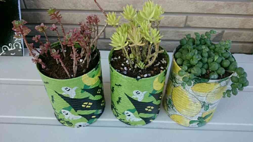 先日造ったデコパージュ缶にセダムさん達入居しました~☺