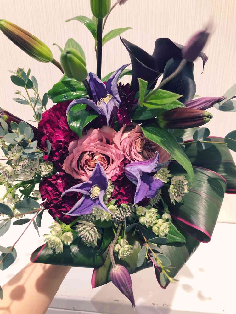 ダークでシックな大人ブーケ。この雰囲気のもの作る時はあまり悩まないです😊