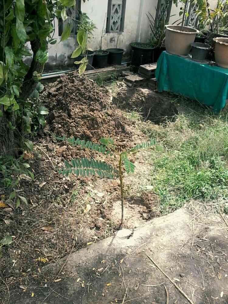 2日掛かりで白胡蝶の植え替え終了です。向こう側の穴の所から2m程度ですが。