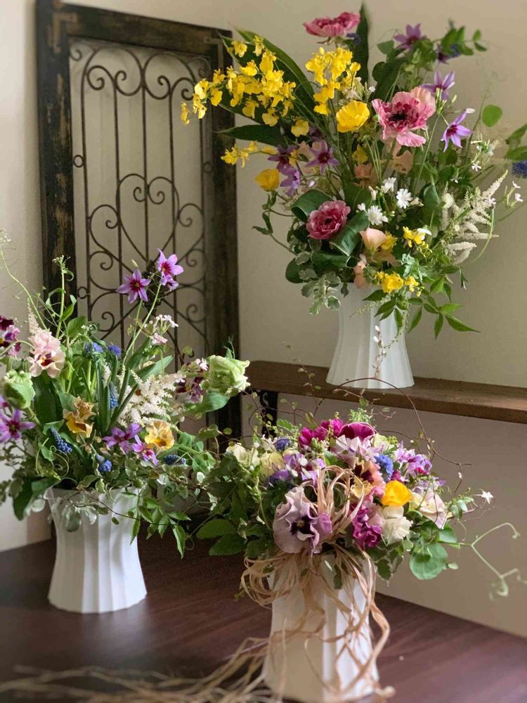 手間はパンジーやスイートピーでふりふりの可愛さを出しました!嬉しいです✨。