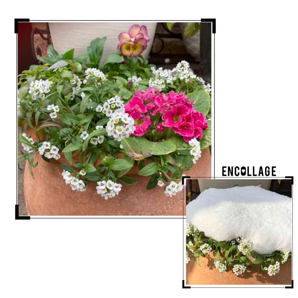 昨日まですっぽり雪を被ってた寄せ植えの鉢❁⃘*.゚